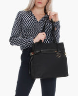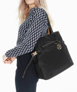 Antoinetta Bag is crafted from lustrous nylon, polished with leather handles and detailed with gold-tone hardware. Its streamlined design is the definition of the on-the-go style.