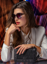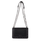 From desk to date night, this light crossbody fits all your fall essentials. Features sliver studs & a chain strap.
