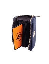 VIOLA wallet is designed in a grain leather effect exterior with a zipper and DV logo.